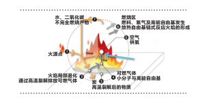 一種隸屬于專利HNPF阻燃體系(HNPF: Halogen-free,Nitrogen & Phosphorus Flame-retardant System),應(yīng)用氣相阻燃機(jī)理,當(dāng)外保溫層材料高溫受熱時(shí),聚合物材料表面形成炭膜并分解生成不燃?xì)怏w,可稀釋火焰區(qū)的氧濃度,阻隔燃燒自由基,減小燃燒速度,終止燃燒鏈反應(yīng)。