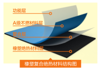 高分子復(fù)合層采用獨(dú)特的高阻燃配方,通過(guò)高分子柔性融合技術(shù)(MFCF: Macromolecule FlexibleComposite Fusion) ,在高溫下實(shí)現(xiàn)融合并與橡塑基材發(fā)生反應(yīng),使得阻燃因子在融合反應(yīng)過(guò)程中,沿材料厚度方向上呈一定的梯度滲透。具備較強(qiáng)的防火性能,也增強(qiáng)了絕熱層間的拉脫力。