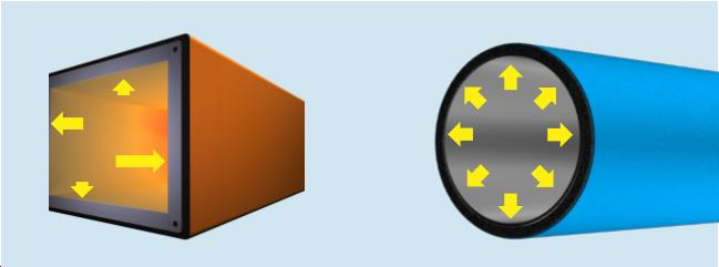 不同于矩形鐵皮風(fēng)管的易剪切壓力變形, Terran TM 特耐系列復(fù)合橡塑風(fēng)管采用圓形、扁圓形狀,將內(nèi)部壓力合理轉(zhuǎn)化成管壁橫向拉伸力,可承受3000Pa-5000Pa以上壓力,遠(yuǎn)高于傳統(tǒng)風(fēng)管2000Pa以下的適用范圍。